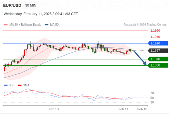 交易策略: 在 1.1920 之下,看跌,目标价位为 1.1870 ,然后为 1.1850 。