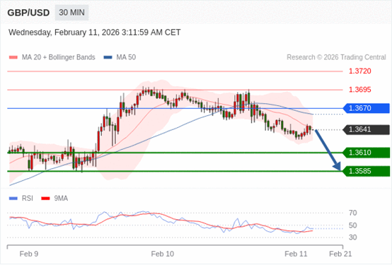 交易策略: 在 1.3670 之下,看跌,目标价位为 1.3610 ,然后为 1.3585。