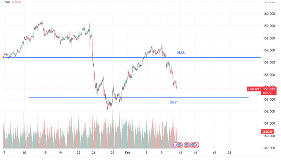USD/JPY在美联储降息预期升温与日本端偏鹰预期的共振下连续两日走弱,亚洲时段继续徘徊在154关口下方:市场等待因停摆延期公布的1月非农(预期新增约7万、失业率4.4%,薪资同样关键)来校验美联储路径——数据若偏弱将强化年内两次降息定价、令美元续承压;若意外强劲则可能触发阶段性反弹。相对地,日本方面在政策偏紧预期与“必要时或干预以稳日元”的心理约束下对日元形成支撑,使汇价上行空间受限。